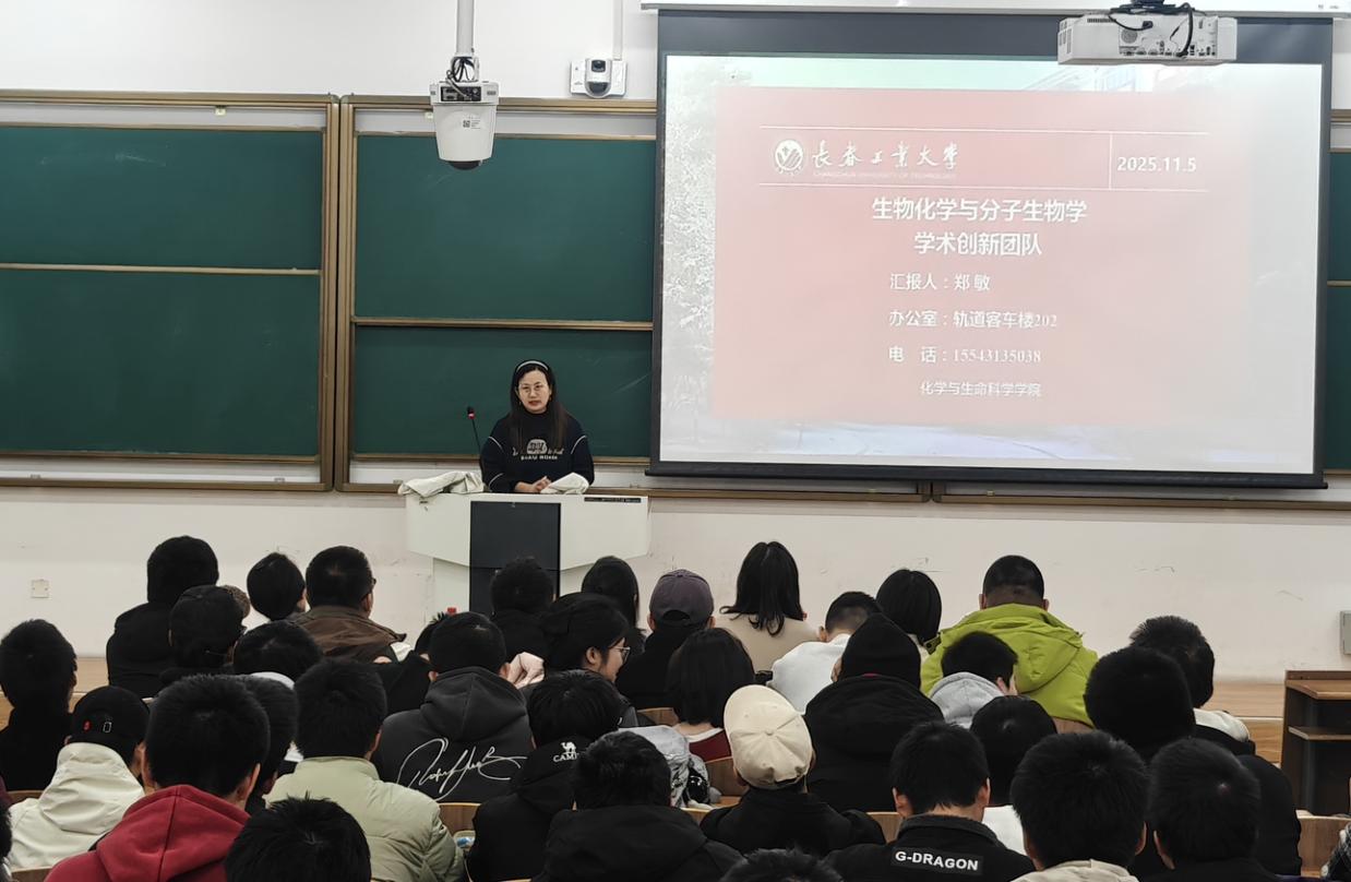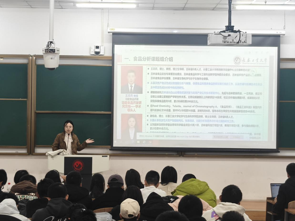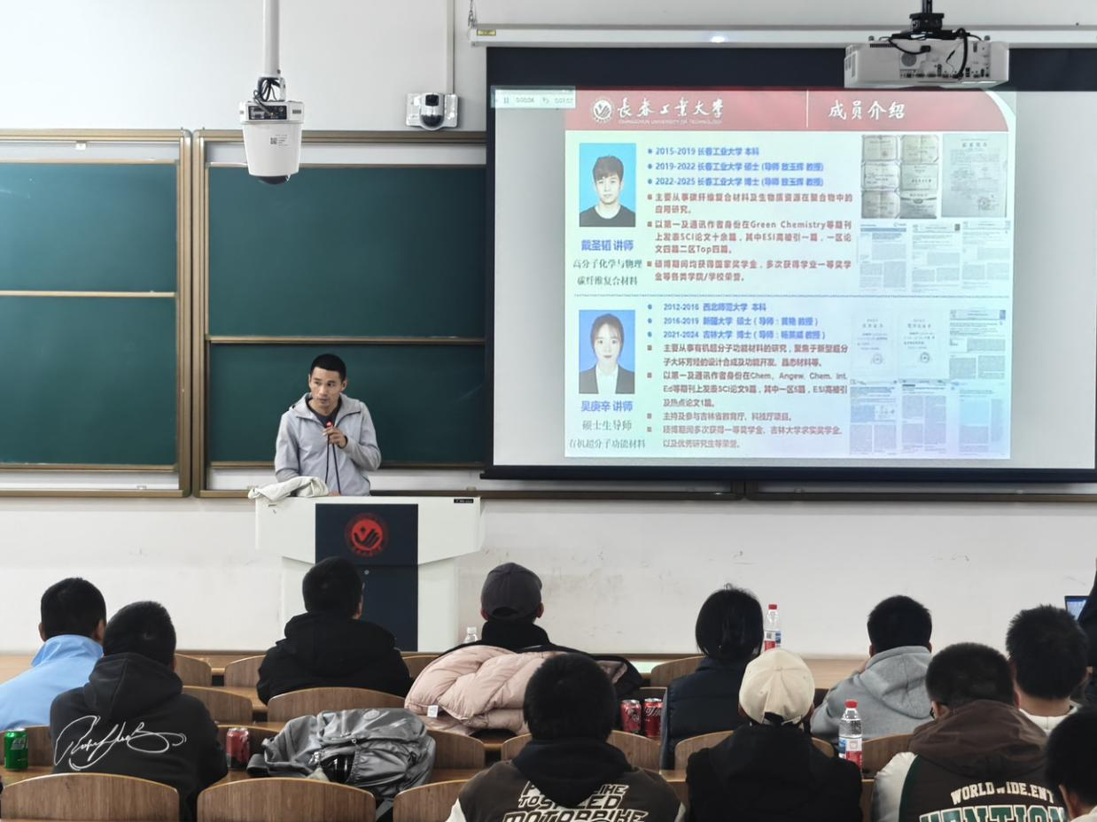 教师依次登台,围绕各自科研团队的研究领域、核心课题、技术平台及成果转化等内容展开详细介绍,同时分享个人研究方向与学术特色,涵盖化学合成、生物制药、环境监测、分子生物学等多个前沿领域。讲解过程中,教师们语言凝练、重点突出,既展现了科研工作的专业性与创新性,也为学子们搭建了与导师面对面沟通的桥梁。
