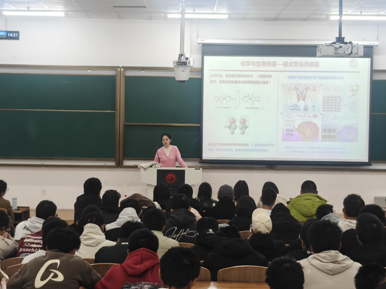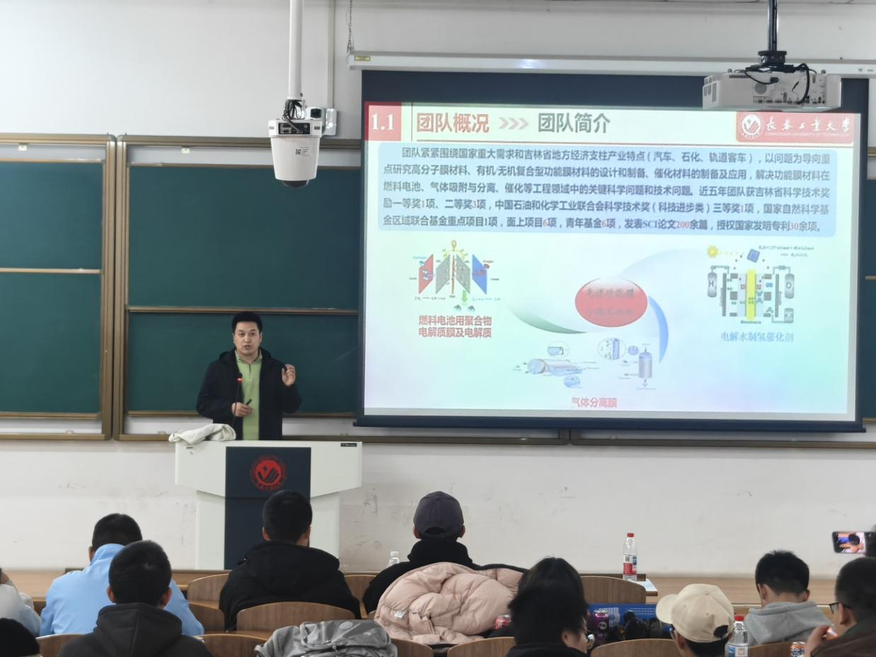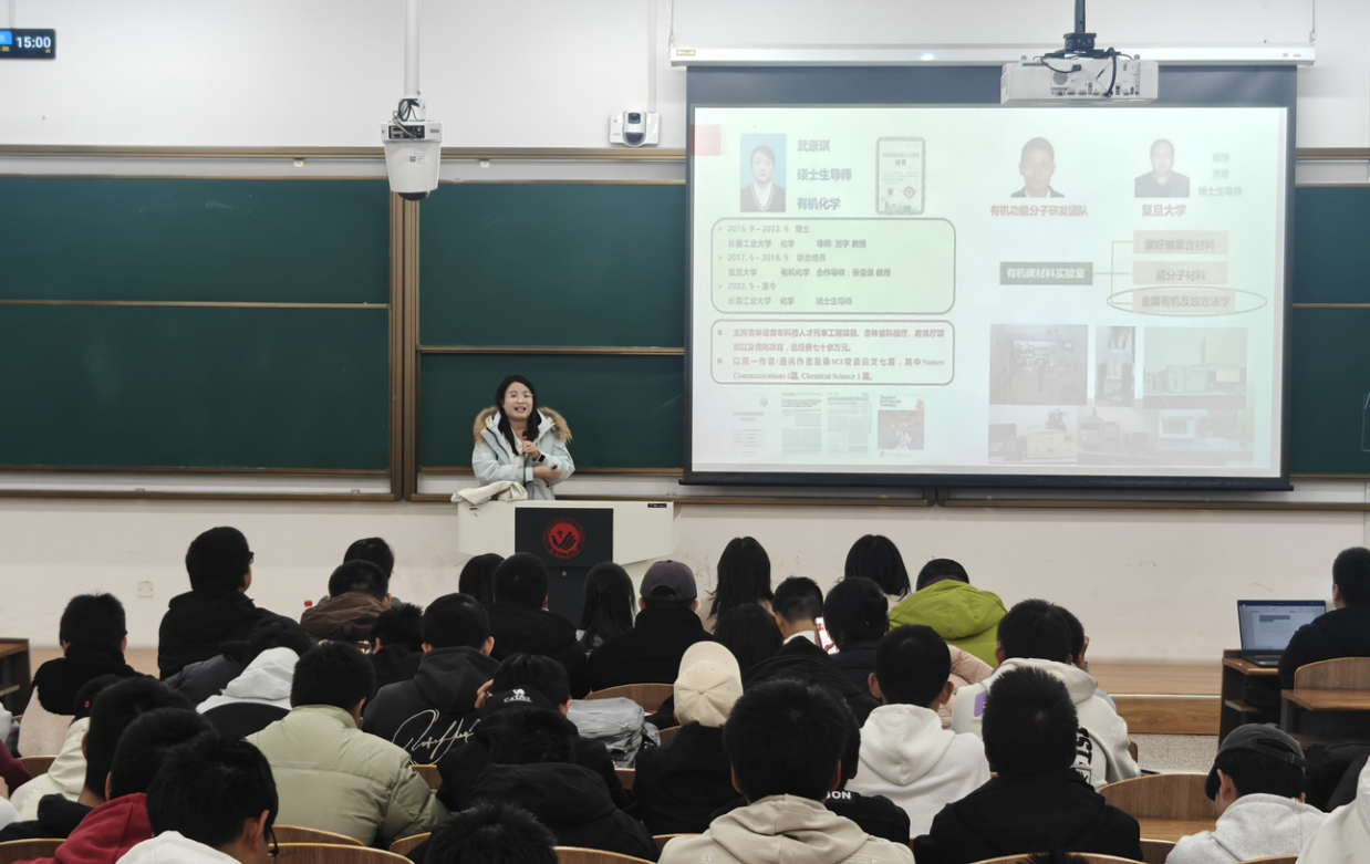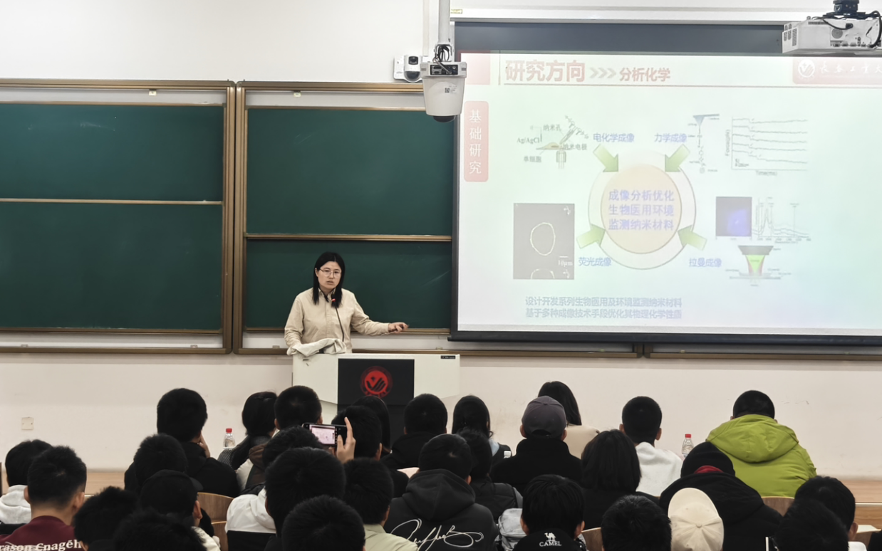 教师依次登台,围绕各自科研团队的研究领域、核心课题、技术平台及成果转化等内容展开详细介绍,同时分享个人研究方向与学术特色,涵盖化学合成、生物制药、环境监测、分子生物学等多个前沿领域。讲解过程中,教师们语言凝练、重点突出,既展现了科研工作的专业性与创新性,也为学子们搭建了与导师面对面沟通的桥梁。
